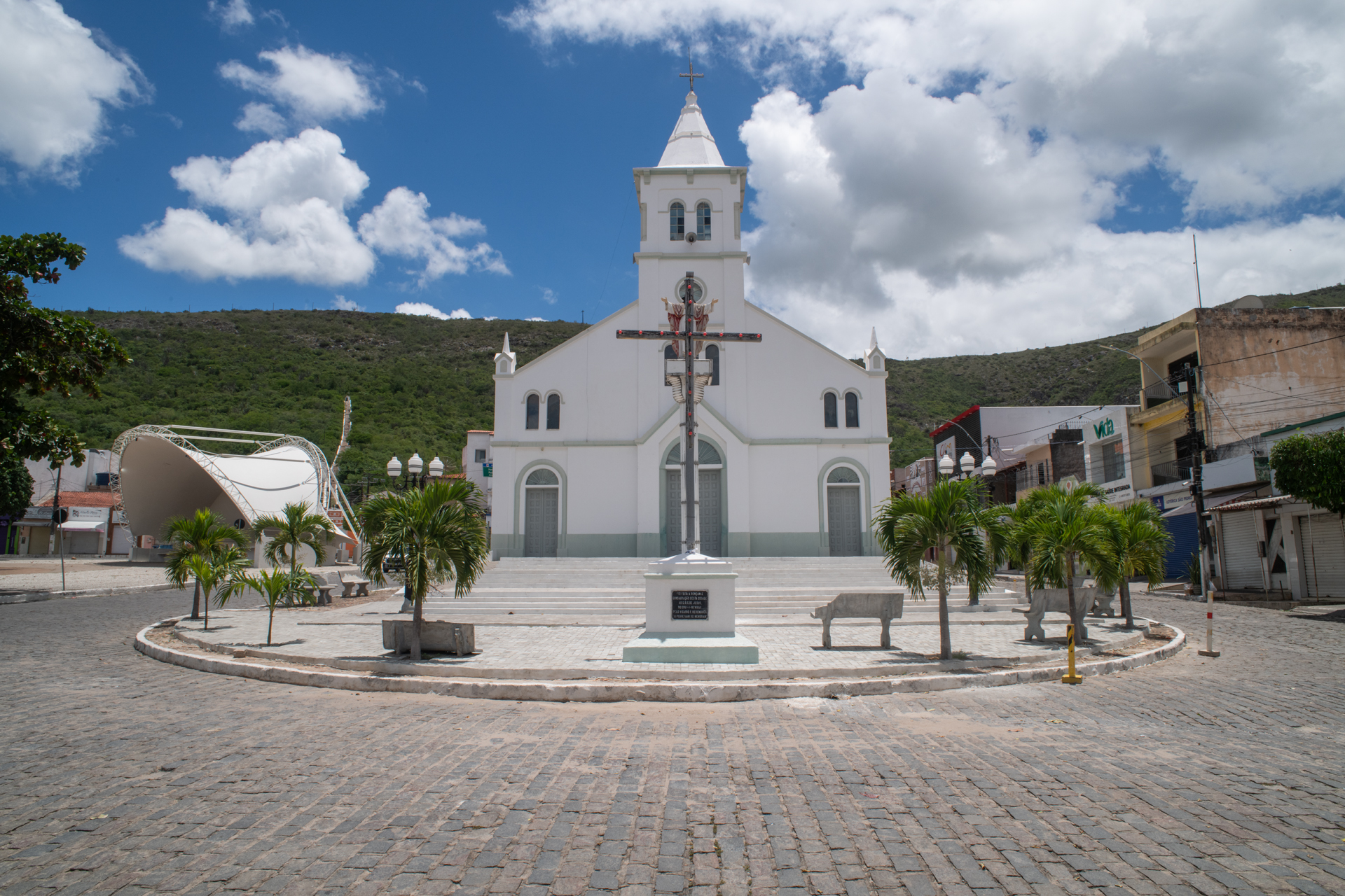 Monte Santo é uma cidade considerada grande para os padrões regionais e fica no pé de um morro, em cima do qual fica o Santuário da Santa Cruz de Monte Santo. Para chegar lá deve-se subir uma longa escadaria, pois veículos não chegam ao topo do morro. O local é destino de uma grande romaria, a Romaria de Todos os Santos. Próximo da escadaria ficam uma linda igreja e uma grande praça.